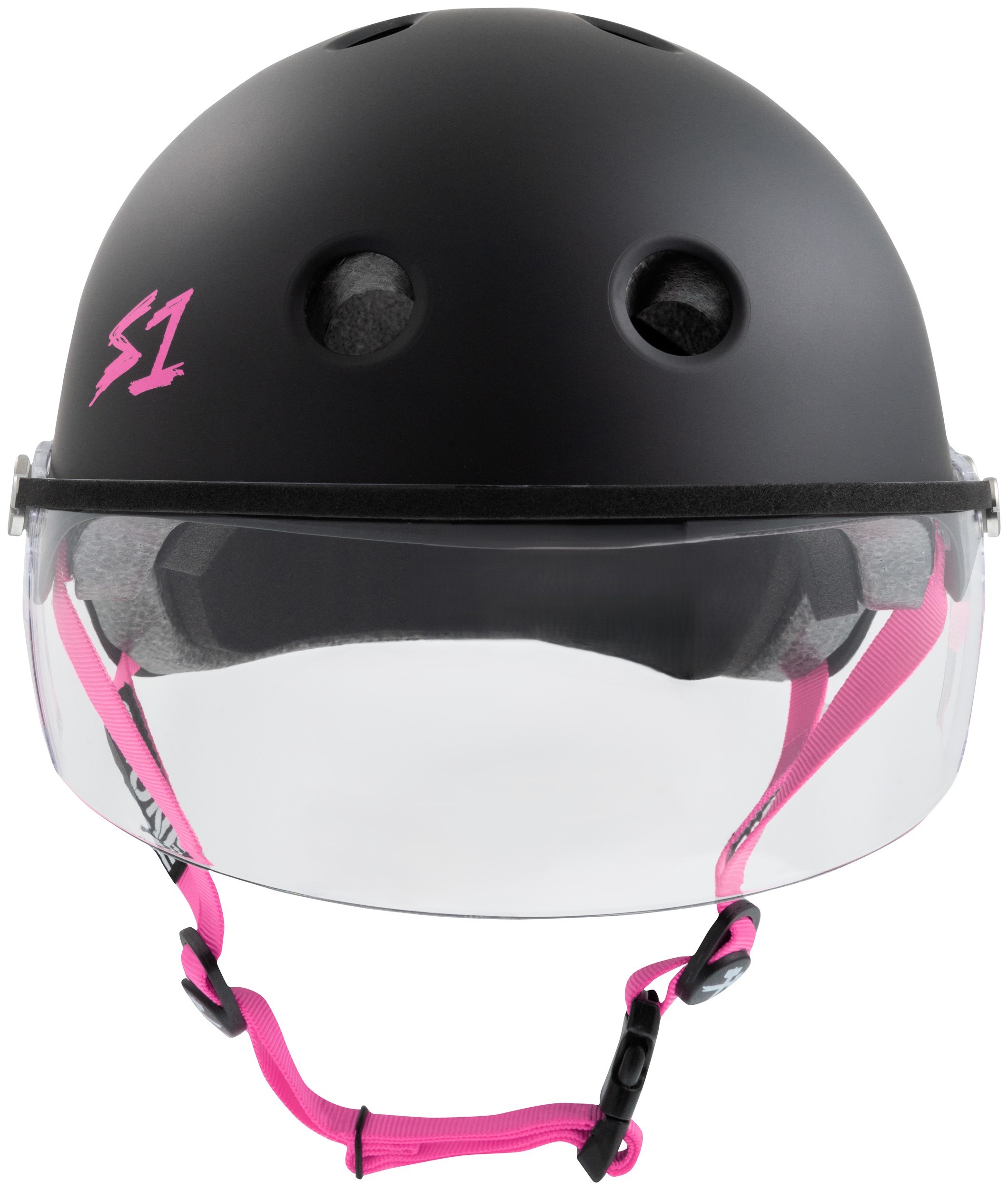 S1 Lifer Visor Helmet Black Matte w/ Pink Straps Certified Skate Helmet