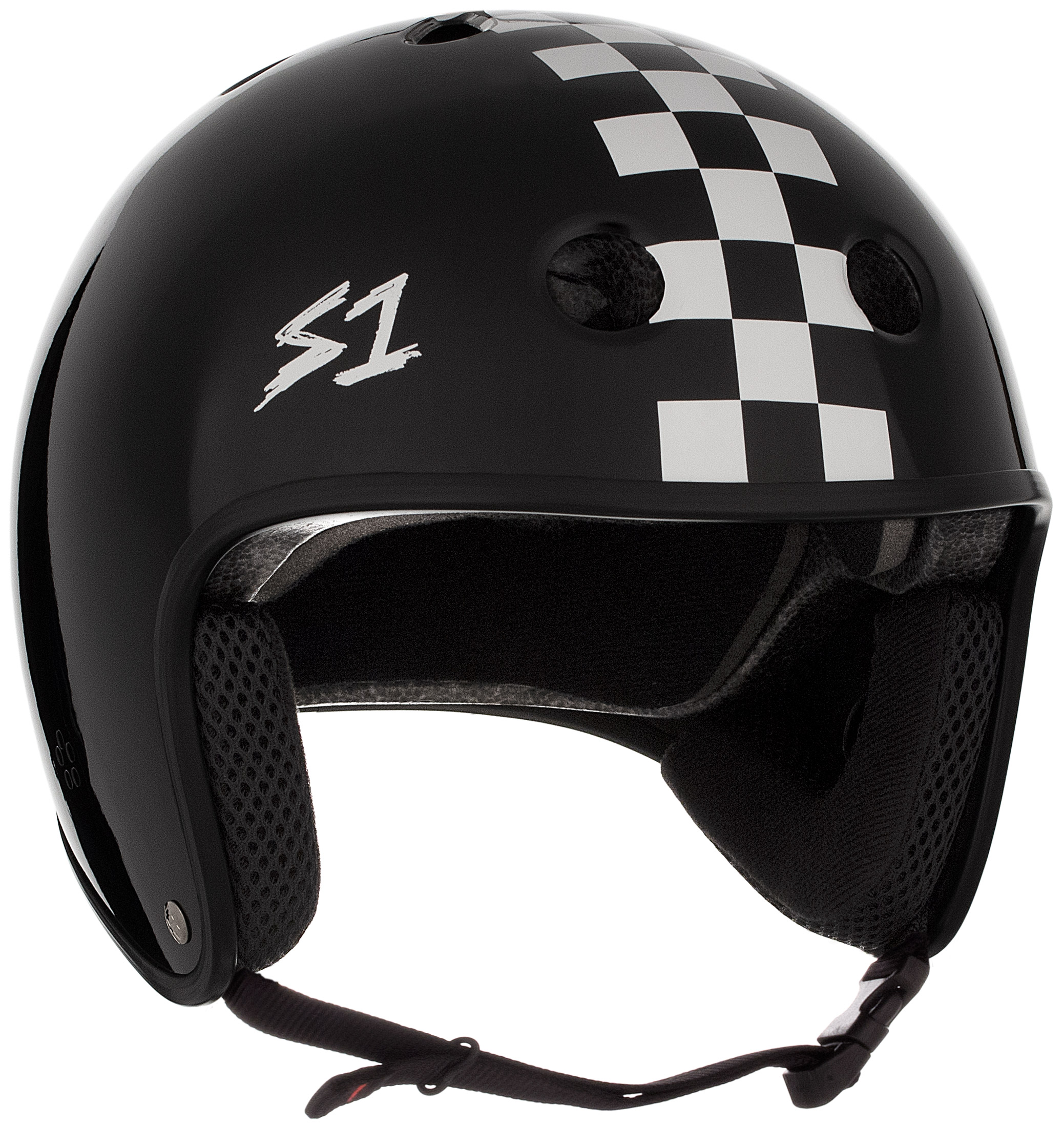 The S1 Retro Lifer Helmet Black Matte w/ White Checkers is certified to protect for skateboarders, pedal cyclists, roller skaters and non motorized scooters.